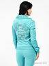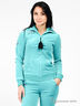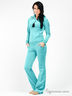 Детали: отложной воротник стойка с односторонними складками, застежка на молнию с кисточкой, два прорезных кармана спереди, спинка декорирована принтом, расклешенные брючины с двумя прорезными карманами спереди.