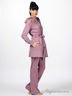 Детали: капюшон; застежка на пуговицы; по боковым швам пришиты шлевки; манжеты и планка застежки - трикотажные резинки; декоративные металлические клепки; в трикотажный пояс брюк вставлена резинка