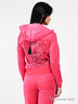 Детали: капюшон с кисточкой, застежка на молнию, два прорезных кармана спереди, спинка декорирована вышивкой, слегка расклешенные брючины с кокеткой сверху.