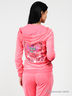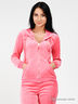 Детали: капюшон, застежка на молнию, два прорезных кармана спереди, спинка декорирована принтом со стразами; расклешенные брючины с двумя прорезными кармана спереди, с поясом на резинке.