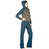 Яркий костюм из хлопка от Nic Club. Куртка на скрытой молнии декорирована принтом "корона с черепом", передняя полочка и спинка расшиты синими атласными нитями. Слайдер украшен металлической короной со стразами. Спереди – два врезных кармана. Низ куртки и манжеты отделаны трикотажной резинкой. В кулиску капюшона и пояс брюк продета декоративная веревка-затяжка с металлическими наконечниками.