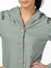 Детали: капюшон; застежка на пуговицы; по боковым швам пришиты шлевки; манжеты и планка застежки - трикотажные резинки; декоративные металлические клепки; в трикотажный пояс брюк вставлена резинка