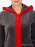 Отличный домашний костюм из эластичного велюра. Олимпийка с капюшоном застегивается на молнию. Брюки прямого кроя с отрезным поясом на резинке. Манжеты длинного рукава, низ олимпийки и отрезной пояс брюк выполнены из трикотажа рибаны. Олимпийка декорирована контрастной окантовкой и вышивкой на спине, брюки - контрастными лампасами. Великолепный вариант как для дома, так и для прогулок.