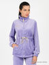 Отличный домашний костюм из эластичного велюра. Олимпийка на молнии с длинным рукавом на резинке. Ворот, декорированный оборкой может быть как отложным, так и стойкой. Пояс на кулиске, два втачных кармана. Брюки прямого кроя с поясом на резинке. Великолепный вариант как для дома, так и для прогулок.
