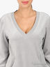 Великолепный домашний костюм из эластичного велюра. Пуловер с V-образным вырезом и двумя втачными карманами декорирован вышивкой и стразами. Брюки прямого кроя с отрезным поясом на резинке. Окантовка выреза, низ изделия, манжеты и пояс брюк в виде трикотажной резинки. Отличный вариант для тех, кто ценит комфорт и качество.