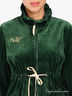 Отличный домашний костюм из эластичного велюра. Олимпийка на молнии с длинным рукавом на резинке. Ворот, декорированный оборкой может быть как отложным, так и стойкой. Пояс на кулиске, два втачных кармана. Брюки прямого кроя с поясом на резинке. Великолепный вариант как для дома, так и для прогулок.