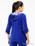 Великолепный домашний костюм из эластичного велюра. Олимпийка на молнии. Рукав 3/4 на кулиске, капюшон с подкладкой, декорированной оригинальным рисунком. Талия дополнена кулиской, позволяющей регулировать ширину изделия, два втачных кармана. Брюки прямого кроя с отрезным поясом из рибаны на резинке, дополненным кулиской. Отличный вариант для тех, кто ценит комфорт и качество.