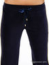 Брюки прямого кроя. В пояс вставлена резинка и регулирующий шнурок.