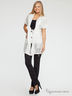 Костюм 3-х предметный: брюки, туника, топ. Туника свободного силуэта, выполнена из двух видов тканей-трикотажа и текстиля одного цвета, с коротким рукавом; на уровне бёдер по переду и спинке выполнены накладные карманы; по низу туника стянута на резинку. Топ полуприлегающего силуэта. Брюки прилегающего силуэта на широком поясе с резинкой, заужены к низу, линия талии занижена, по переду выполнены застроченные стрелки.