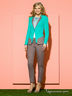 Костюм 3-х предметный: жакет, брюки и топ. Жакет полуприлегающего силуэта с втачными двухшовными рукавами. Брюки плотнооблегающие, зауженные к низу.. Топ полуприлегающего силуэта, декорирован принтом.