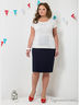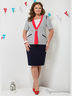 Костюм 3-хпредметный: жакет, джемпер, юбка. Жакет полуприлегающего силуэта с коротким рукавом. Джемпер прилегающего силуэта с круглым вырезом горловины. Юбка -карандаш, длина за колено.