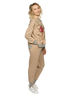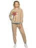 Новый свободный объем! Костюм женский из мягкого футера: толстовка и брюки. Спущенное плечо, широкий рукав, отделка из рибаны, сложные меланжевые цвета. Небольшой перепад длин между передом и спинкой, разрезы в боковых швах. Стойкий принт с разными оттенками золота и черным глиттером. Перевод: Вечность. Брюки комфортной посадки, карманы в боковых швах, пояс и манжеты из рибаны.