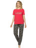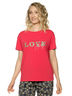Комплект женский: футболка и брюки. Футболка прямого кроя с аккуратным втачным рукавом. Стойкий эластичный принт. Перевод Пусть будет любовь! И ты., Брюки прямого кроя из мягкого принтованного трикотажа, небольшого объема с резинкой по поясу.