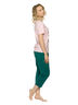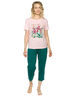 Комплект женский: футболка и бриджи. Футболка среднего объема со стойким эластичным принтом. Свободные по всей длине бриджи.
