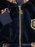 Костюм состоит из толстовки и брюк, выполненных из панбархата.