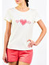 Цвет изделия комбинированный-молочный/коралловый с принтом на футболке.