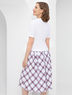 Поговорим? На языке моды. Когда слова и жесты не нужны, а образ говорит сам за себя. Идеально: костюм для вас из белоснежного жакета на запахе и юбки с красочной клеткой. Детали: люверсы, пояс-бант, эффектный вырез.