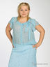 Комплект из юбки, блузки и топа. Выполнен из шифона с принтом в мелкий цветочек. У блузы круглая горловина, короткие рукава и декоративные складки на полочке. Юбка слегка расклешенного покроя, двухслойная.
