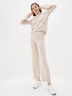 Вязаный костюм в спортивном стиле. Изделия выполнены из мягкой, теплой пряжи со стрейчевым эффектом. Укороченное худи с воротником стойкой. Спереди накладной карман «кенгуру». Крой свободный, впереди небольшой разрез. Спущенные плечи. Длинные широкие рукава. Брюки-трубы с высокой посадкой, вывязанные боковые карманы. Внизу брюк небольшие разрезы. Края связаны широкой резинкой.