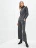 Вязаный костюм с высокой горловиной. Джемпер свободного кроя. Длинные рукава, манжеты с разрезом. Расклешенные брюки с высокой посадкой, на резинке. Передние карманы вывязанные. Пряжа с содержанием шерсти.