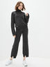 Вязаный костюм в спортивном стиле. Изделия выполнены из мягкой, теплой пряжи со стрейчевым эффектом. Укороченное худи с воротником стойкой. Спереди накладной карман «кенгуру». Крой свободный, впереди небольшой разрез. Спущенные плечи. Длинные широкие рукава. Брюки-трубы с высокой посадкой, вывязанные боковые карманы. Внизу брюк небольшие разрезы. Края связаны широкой резинкой.