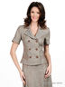 Детали: отложной ворот с лацканами, вытачки, застежка на пуговицы, два передних кармана, изделие украшено кружевами