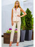 Очаровательный костюм состоит из двух предметов: жилет и брюки. Изделия выполнены из качественного материала привлекательной расцветки. Жилет без рукавов с отложным воротником. Приталенный крой подчеркивает достоинства фигуры. Спереди - застежка на пуговицы. Брюки прямого кроя. Отличный вариант на каждый день.