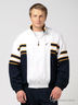 Ветровка с воротом стойкой и длинным рукавом выполнена из плотного шелковистого материала под плащевку с хлопковым подкладом. Застежка на молнию. Два передних кармана. Рукава и низ изделия посажены на манжеты. Полочка украшена вышивкой. Контрастные вставки.