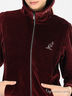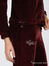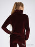 Стильный велюровый спортивный костюм из олимпийки и брюк. Олимпийка с воротником стойкой на молнии украшенной стразами. Подклад воротника выполнен из атласа в тон. Длинные рукава с манжетами-резинкой. Два прорезных кармана. По низу изделия - кулиска. Брюки прямого покроя. Посажены на резинку. Костюм декорирован стразами.