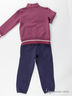 Спортивный костюм состоит из толстовки и брюк. Толстовка с воротом стойкой выполнена из плотного трикотажа с футеровым подкладом и застегивается на молнию. Два передних кармана. Манжеты и низ изделия - трикотажные резинки. Полочка украшена принтами и пайетками. Брюки прямого силуэта выполнены из плотного трикотажа с футеровым подкладом. В трикотажный пояс вставлен регулирующий шнурок. Два передних кармана. Низ брючин посажен на манжеты с резинкой. Передняя часть украшена принтами.