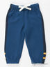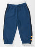 Брюки прямого силуэта выполнены из плотного трикотажа. В пояс вшита резинка и вставлен регулирующий шнурок. Контрастные лампасы. Низ брючин посажен на манжеты с резинкой.
