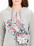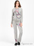 Детали: олимпийка - застегивается на молнию; манжеты и низ изделия в виде трикотажной резинки в рубчик; капюшон внутри из атласной ткани, дополнен кулиской; два кармана; брюки - отрезной трикотажный пояс на резинке с кулиской; костюм декорирован оригинальными аппликациями со стразами