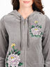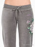 Детали: олимпийка - застегивается на молнию; манжеты и низ изделия в виде трикотажной резинки в рубчик; капюшон внутри из атласной ткани, дополнен кулиской; два кармана; брюки - отрезной трикотажный пояс на резинке с кулиской; костюм декорирован оригинальными аппликациями со стразами