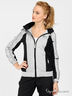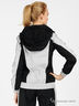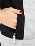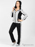 Детали: олимпийка - ворот-стойка дополнен кармашком, в котором помещается тонкий капюшон; низ изделия и манжеты на резинке; застегивается на молнию; два прорезных кармана на молнии; брюки - пояс на резинке дополнен кулиской; два прорезных кармана на молнии; костюм декорирован контрастными вставками