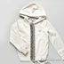 Верх: трикотажная кофта с капюшоном, застежка на молнию, ветрозащитный клапан украшен стразами и пайетками, спереди два втачных кармана, манжеты рукавов и низ изделия выполнены из трикотажной резинки.