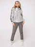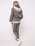 Стильный спортивный костюм Глоу состоит из толстовки и брюк. Толстовка свободного кроя с капюшоном оформлена довязом и серебристыми лентами по рукавам. Спинка слегка удлинена. Комфортные брюки на широкой резинке из довяза дополнены эластичными манжетами и полосами из ткани с напылением. В боковых швах предусмотрены прорезные карманы.