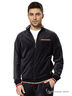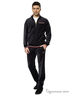 1. Изделие из велюрового полотна; куртка с центральной застежкой на молнию; с воротником-стойкой; с контрастными полосами на “листочке” кармана левой груди; с боковыми карманами на молнии; воротник, манжеты, пояс с контрастными полосами выполнены из трикотажного полотна ластик.
