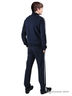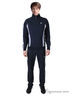 Куртка с центральной застежкой на фирменную молнию с воротником-стойкой. На полочках и рукавах вставки контрастного цвета. Боковые карманы без молний. Манжеты, воротник и пояс – из трикотажного полотна ластик. На полочке шеврон. Брюки прилегающего силуэта с контрастными вставками по бокам. Боковые карманы без молний. Пояс с эластичной тесьмой, регулируемый шнуром. Шеврон.