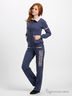 Толстовка на молнии, отложной воротник, врезные карманы на молнии. На рукавах и на поясе манжеты из трикотажной резинки. На груди майки и на брюках термоаппликация. Брюки на резинке.
