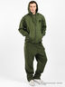 Спортивный костюм состоит из толстовки и брюк. Толстовка с капюшоном на кулиске, длинные рукава, застежка на молнию, спереди 2 втачных кармана. Брюки на отрезном поясе-резинке, спереди 2 прорезных кармана на молнии, сзади 2 накладных кармана.