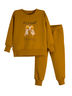 Костюм из 2х-ниточного петельчатого футера с добавлением эластана. Свитшот на манжетах из кашкорсе. Спереди стильный принт, выполненный гипоаллергенными красками. Брюки средней посадки, на манжетах, карманы с отрезным бочком.