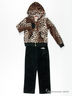 Брюки прямого силуэта. В пояс брюк вставлена резинка. Передняя часть украшена стразами и вышивкой.