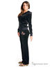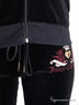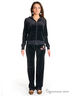 Костюм состоит из олимпийки и брюк. Выполнен из велюра.