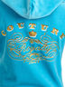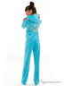 Домашний костюм состоит из жакета и брюк, из пушистого, мягкого материала. Жакет имеет два кармана и украшен аппликацией на спинке. С капюшоном и сплошной застежкой на молнию. Брюки прямого кроя с поясом в рубчик и завязочкой для регулирования ширины. Украшены аппликацией.