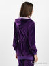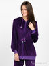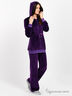 Элегантный домашний костюм, состоящий из олимпийки и брюк, выполнен из мягкого, полуэластичного микровелюра. Олимпийка полуприталенного силуэта. Округлый врез горловины с капюшоном на кулиске. Застежка на молнию. Длинные прямые рукава с манжетами. Два кармана в боковых швах. Талия подчеркнута шнурком в кулиске. Манжеты и низ изделия выполнены из кашкорсе. Брюки прямого покроя. Отрезной пояс из кашкорсе на резинке.