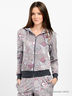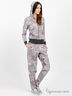 Стильный домашний костюм из плотного, приятного на ощупь трикотажа с оригинальным принтом. Костюм состоит из олимпийки и брюк. Олимпийка свободного покроя. Модель дополнена капюшоном на кулиске. Длинные облегающие рукава на манжетах. Два накладных кармана. Застежка на молнию. Манжеты и низ изделия выполнены из рибаны. Брюки зауженного покроя. Отрезной пояс из рибаны на резинке.