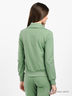 Восхитительный домашний костюм из мягкого, плотного хлопкового трикотажа с добавлением лайкры. Костюм состоит из олимпийки и брюк. Высокий ворот-стойка с шнуром в кулиске. Длинные прямые рукава на манжетах. Полочки дополнены кокетками с декоративными люверсами. Застежка на молнию. Два кармана в боковых швах. Ворот, манжеты и низ изделия выполнены из кашкорсе. Брюки прямого покроя. Отрезной пояс из кашкорсе на резинке. Спереди два накладных кармана.