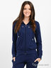 Восхитительный домашний костюм из мягкого, плотного хлопкового трикотажа с добавлением лайкры. Костюм состоит из олимпийки и брюк. Высокий ворот-стойка с шнуром в кулиске. Длинные прямые рукава на манжетах. Полочки дополнены кокетками с декоративными люверсами. Застежка на молнию. Два кармана в боковых швах. Брюки прямого покроя. Отрезной пояс на резинке. Спереди два накладных кармана.