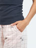 Изящный комплект для сна и отдыха. Маечка прилегающего силуэта на тонких регулируемых бретелях выполнена из вязаного трикотажного полотна "рибана". Лиф декорирован мягким кружевом и декоративной планкой с пуговицами. Брюки из принтованного хлопкового полотна. Модель свободного фасона с карманами, пояс с резинкой и декоративным шнурком.
