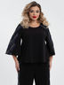 Блуза расклешенная к низу. Круглый вырез блузы обработан внутренней обтачкой. Втачные рукава дополнены нашитыми декоративными элементами.